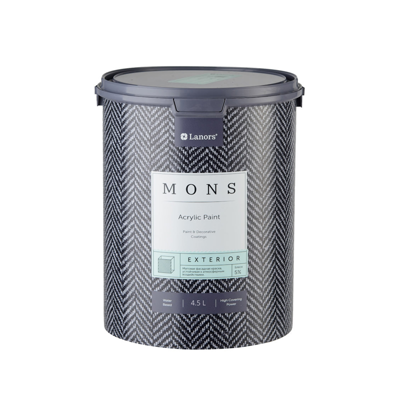 Mons Exterior 5 л — прочная фасадная краска для защиты и отделки кирпичных, штукатурных и деревянных поверхностей