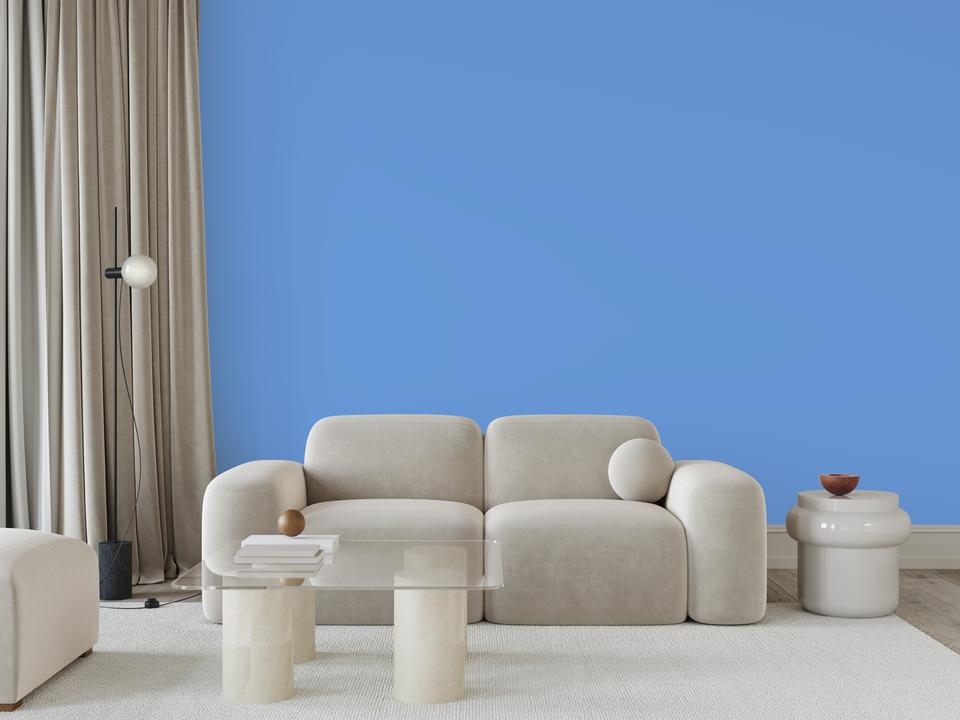 В интерьере этот цвет наполняет пространство прохладой и светом. Он визуально расширяет комнату, делает ее более просторной. При разном освещении остается ярким голубым.