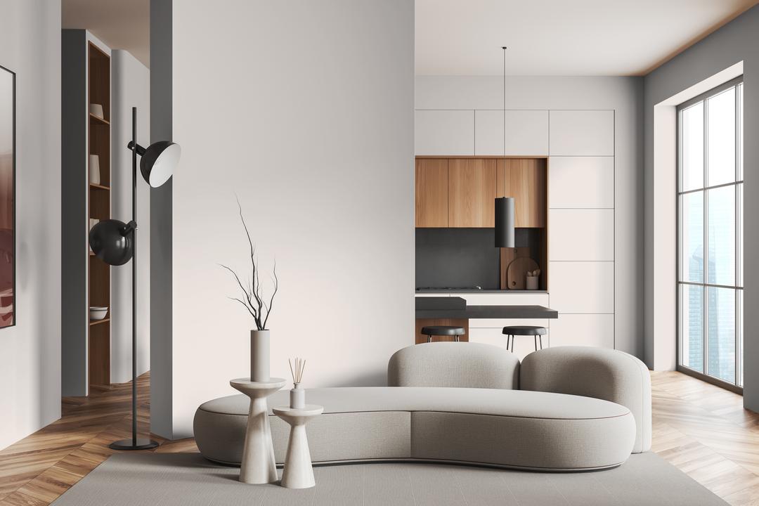 В интерьере этот цвет создает атмосферу утренней свежести и покоя. Он визуально расширяет пространство, делает его более светлым. При разном освещении остается ровным розовато-бежевым.