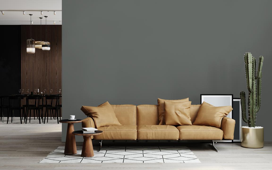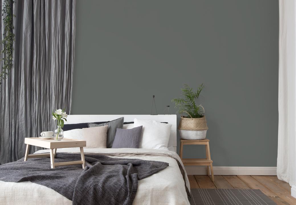 В интерьере этот цвет создает ощущение стабильности и защищенности. Он хорошо работает как фон для более ярких деталей. При разном освещении меняется от серого до оливкового.