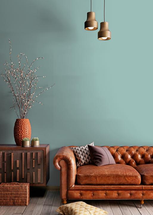 В интерьере этот цвет наполняет пространство светом и прохладой. Он визуально расширяет комнату, делает ее более просторной. При разном освещении меняется от голубого до зеленого.