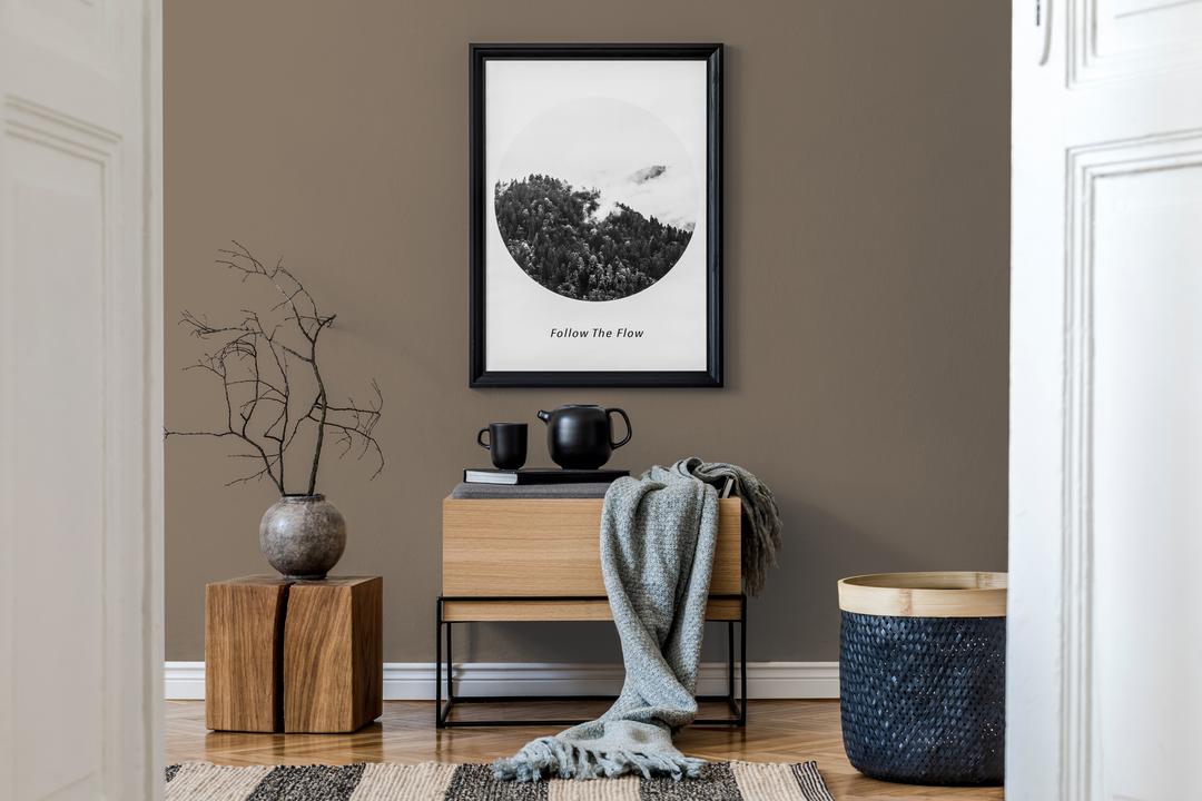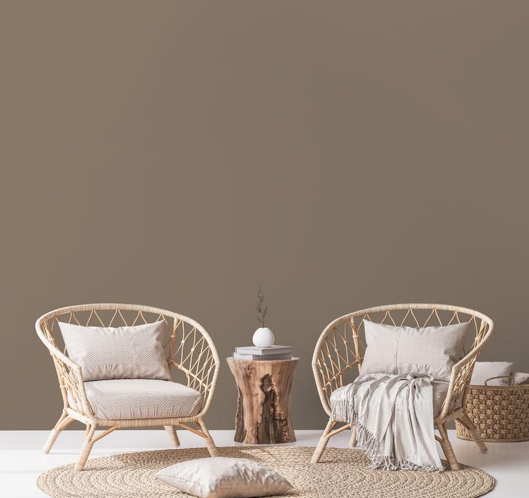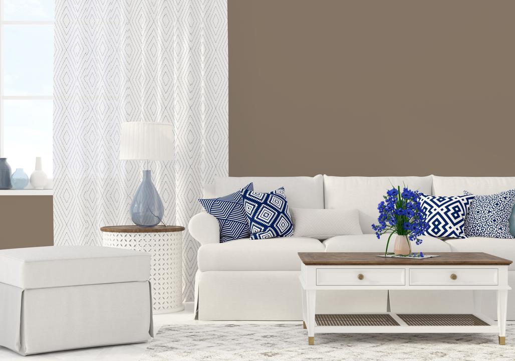 В интерьере этот цвет создает атмосферу библиотеки, кабинета, холостяцкой квартиры. Он отлично сочетается с кожей и деревом. При разном освещении становится теплее.