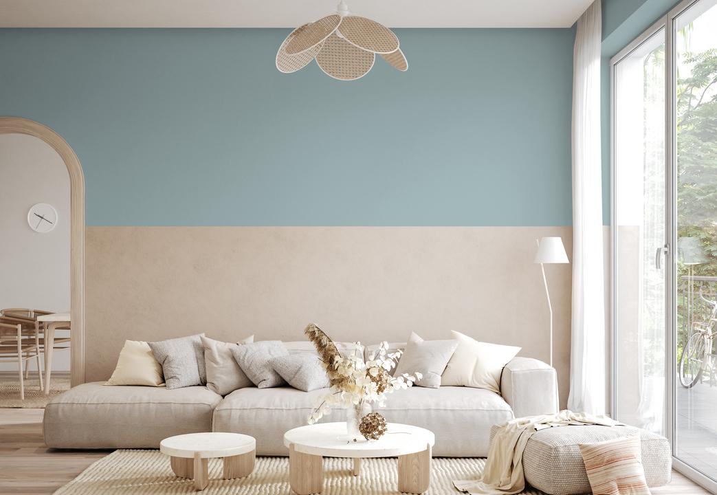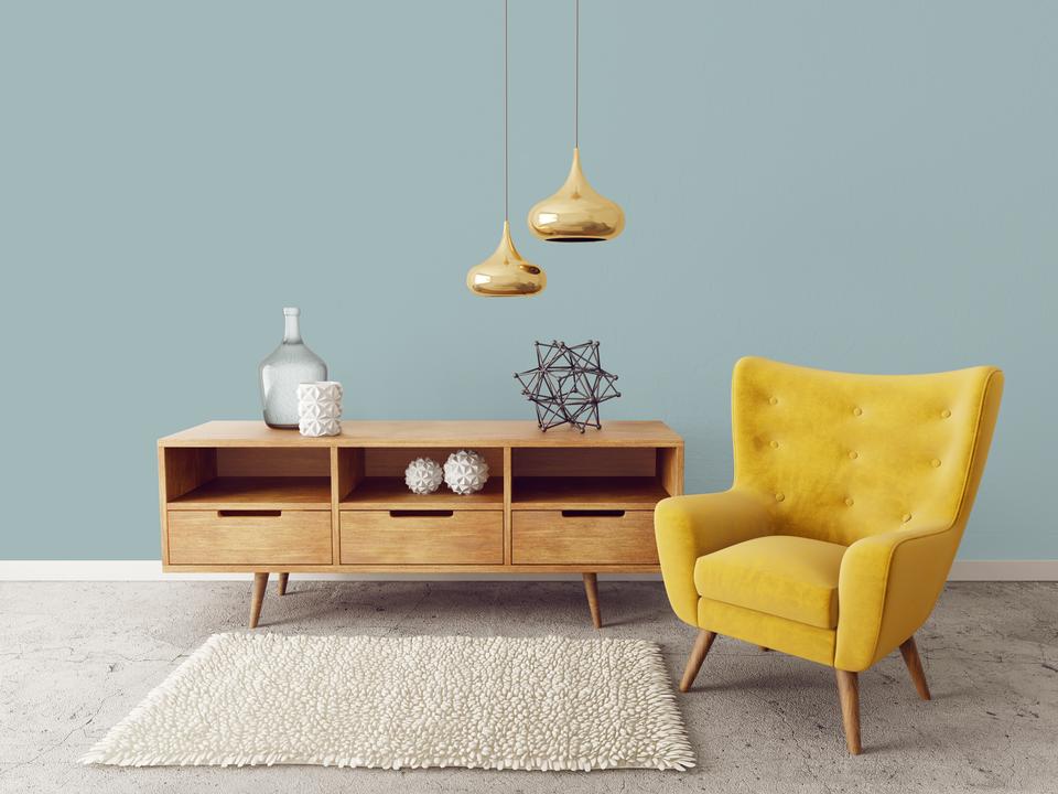 В интерьере этот цвет создает атмосферу спокойной элегантности. Он отлично работает как основной фон или акцент. При разном освещении меняется от бирюзового до серого.