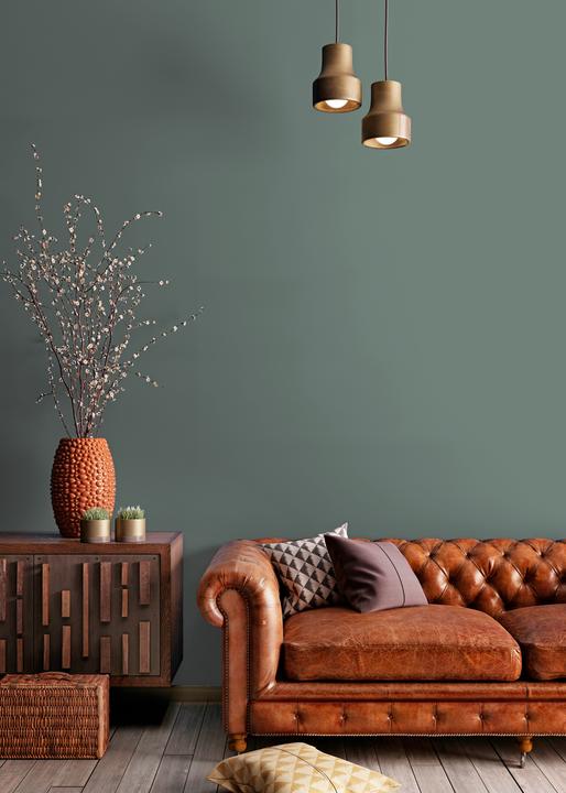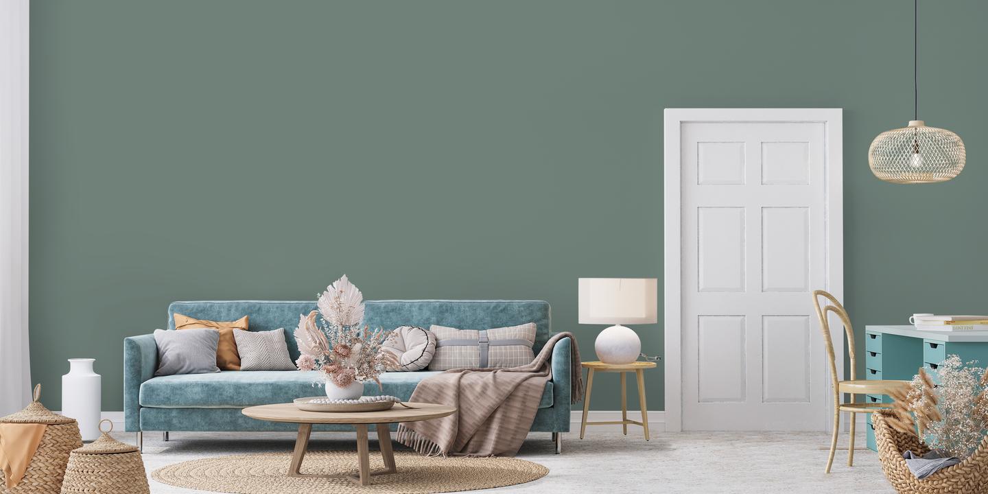 В интерьере этот цвет создает атмосферу лесной прохлады и свежести. Он отлично работает как основной фон или акцент. При разном освещении меняется от зеленого до синего.