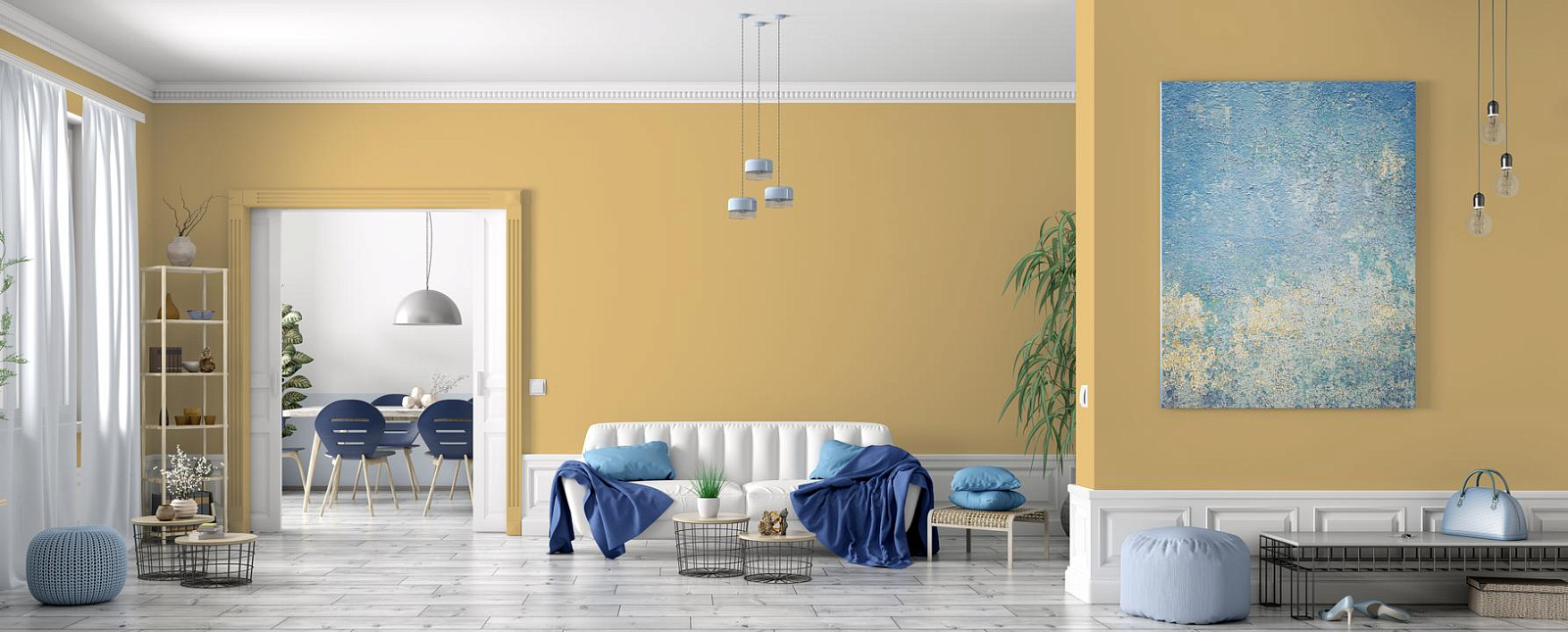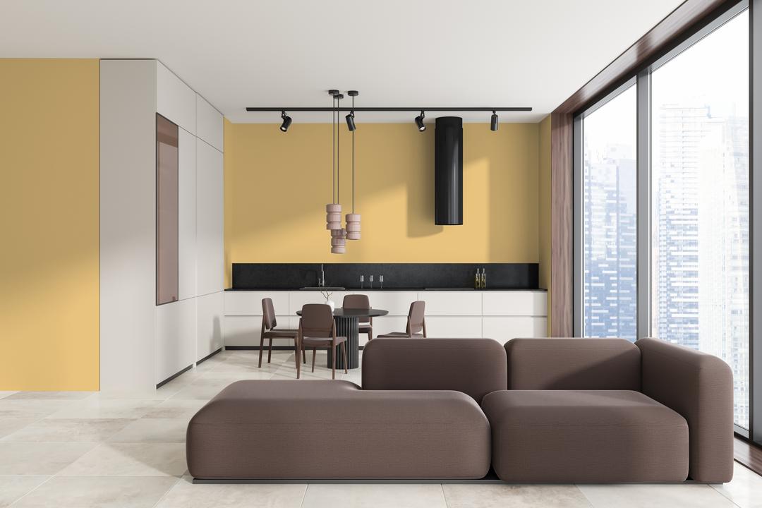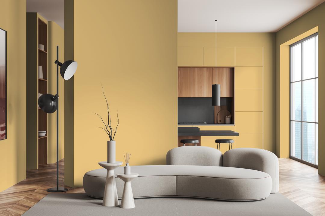В интерьере этот цвет наполняет пространство светом и роскошью. Он отлично работает как акцент или основной тон в комнатах, выходящих на север. При разном освещении меняется от золотистого до охристого.