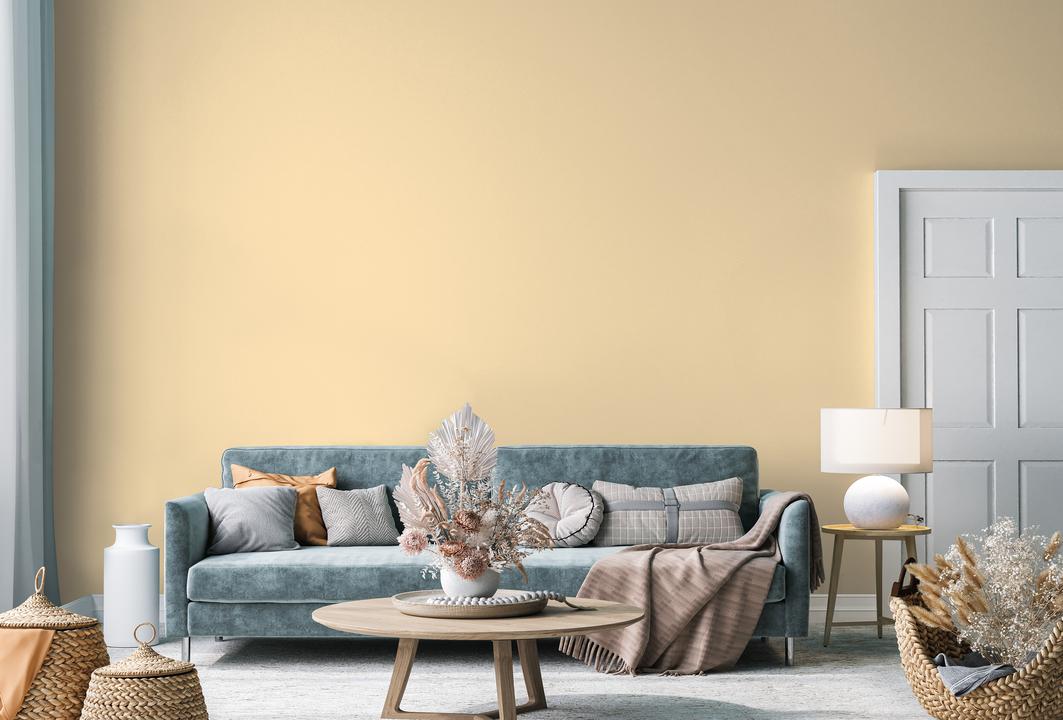 В интерьере этот цвет наполняет пространство уютом и радостью. Он визуально приближает стены, создавая камерную атмосферу. При разном освещении играет от светло-желтого до насыщенного медового.