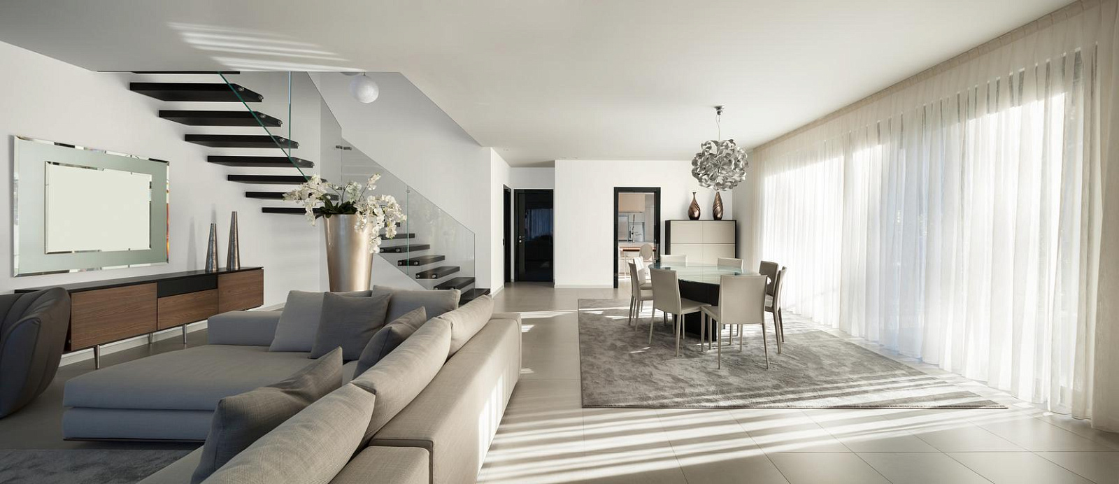 В интерьере этот цвет расширяет пространство, делает его строгим и элегантным. Он отлично отражает свет, подходит для создания минималистичных интерьеров. При теплом освещении немного смягчается.