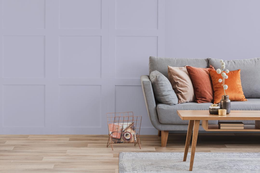 В интерьере этот цвет создает атмосферу прованса и летнего отдыха. Он отлично работает как основной фон или акцент. При разном освещении меняется от сиреневого до серого.