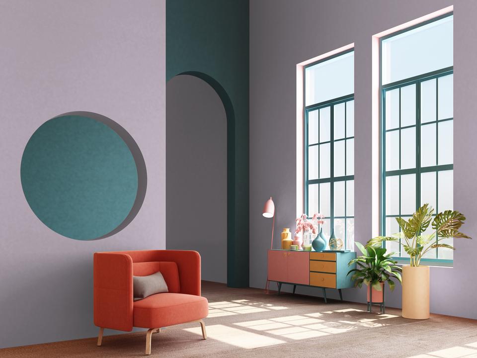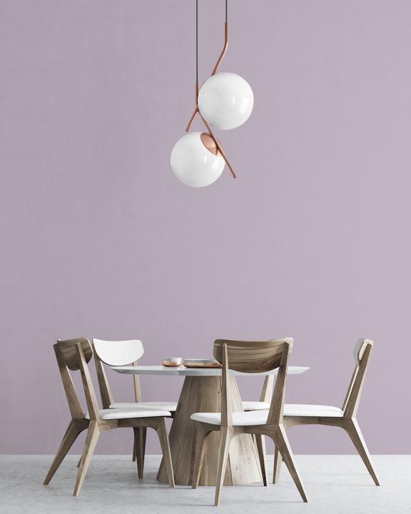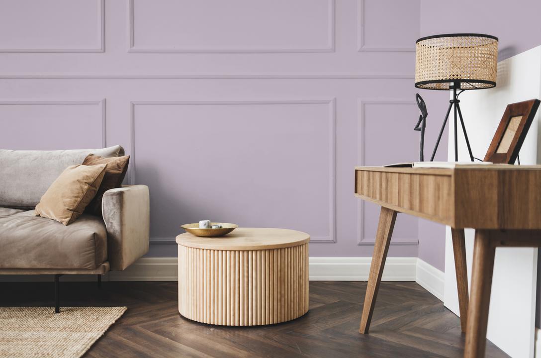 В интерьере этот цвет создает умиротворяющую, слегка загадочную атмосферу. Он визуально смягчает пространство, делает его более камерным. При естественном свете проявляется серый подтон, при искусственном — фиолетовый.