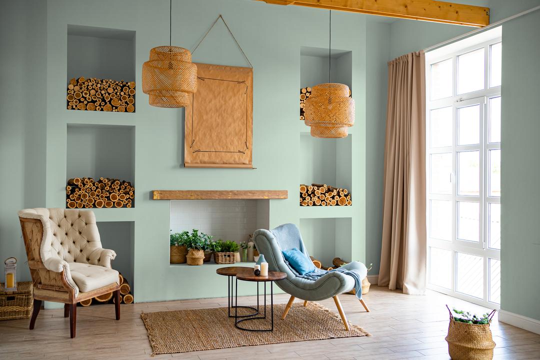 В интерьере этот цвет наполняет пространство свежестью и светом. Он визуально расширяет комнату, делает ее более воздушной. При разном освещении остается нежно-зеленым.