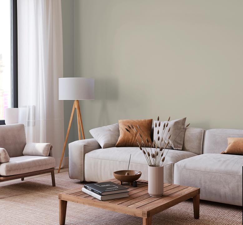 В интерьере этот цвет создает атмосферу свободы и натуральности. Он отлично сочетается с деревянными поверхностями и этническими элементами. При разном освещении меняется от бежевого до серого.