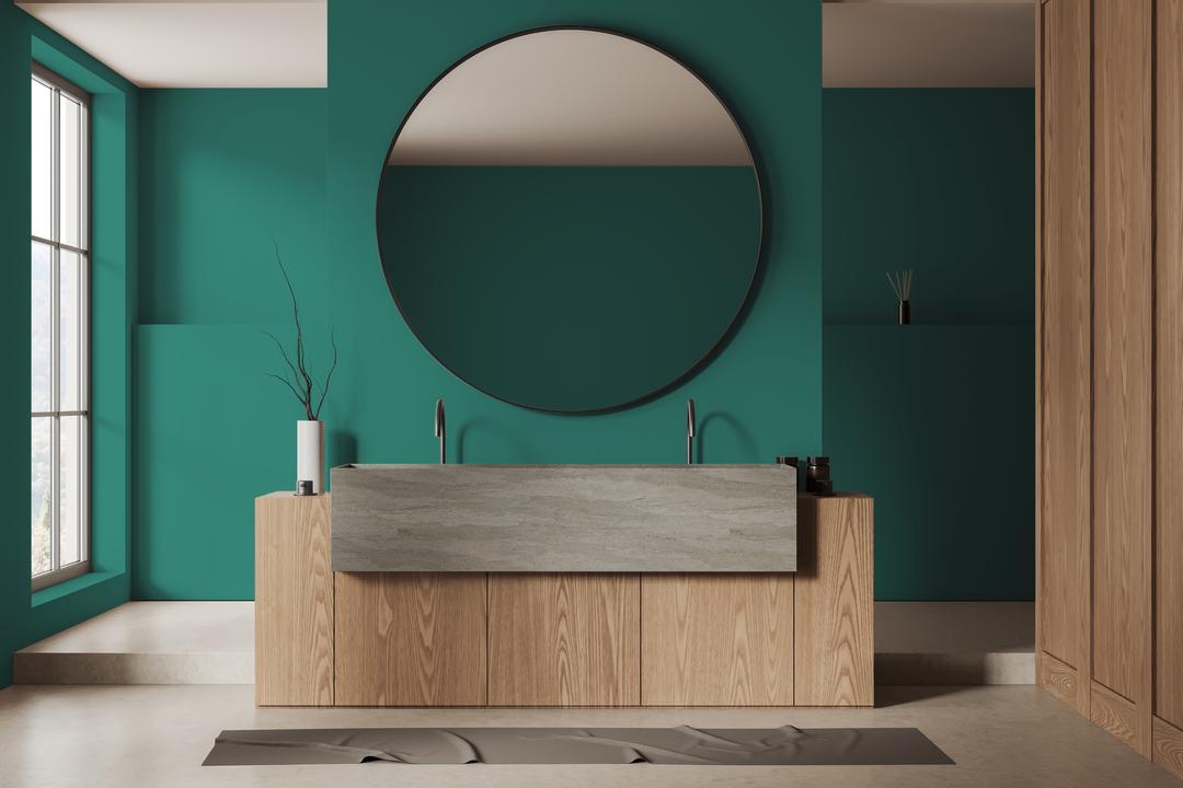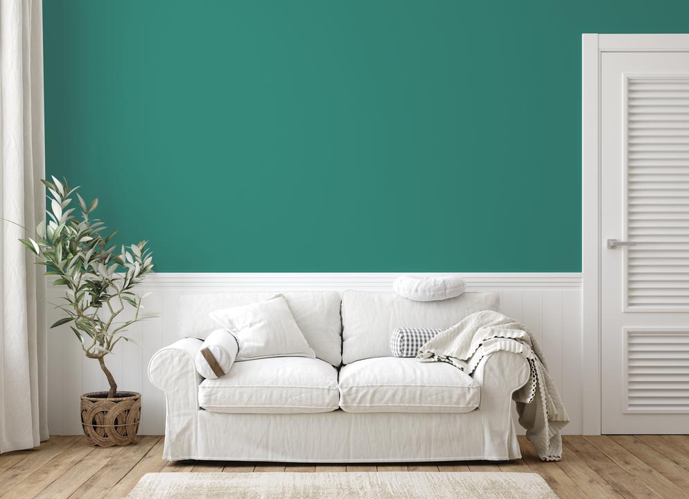 В интерьере этот цвет создает атмосферу восточной сказки и прохлады. Он отлично работает как акцент или основной тон в ванных и спальнях. При разном освещении раскрывается от зеленого до синего.