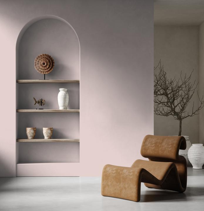 В интерьере этот цвет наполняет пространство нежностью и покоем. Он визуально расширяет комнату, делает ее светлее. При разном освещении играет от розового до персикового.