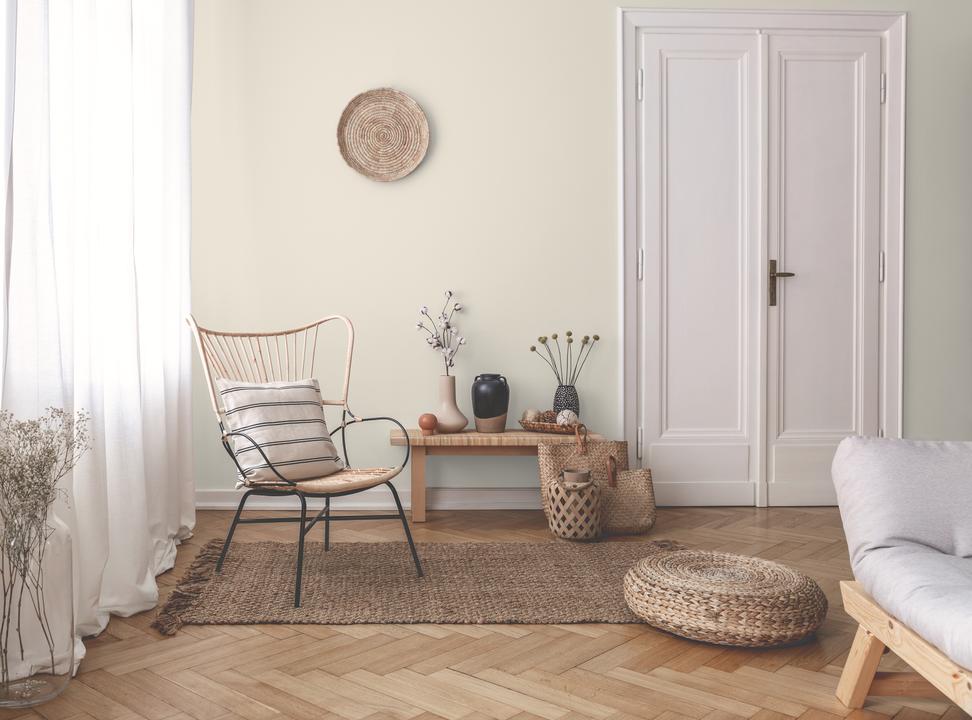 В интерьере этот цвет создает элегантную, утонченную базу. Он идеально подходит для классических интерьеров, но и в современном стиле смотрится свежо. При разном освещении остается ровным теплым.