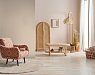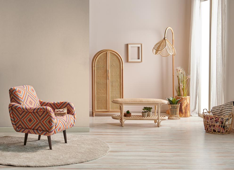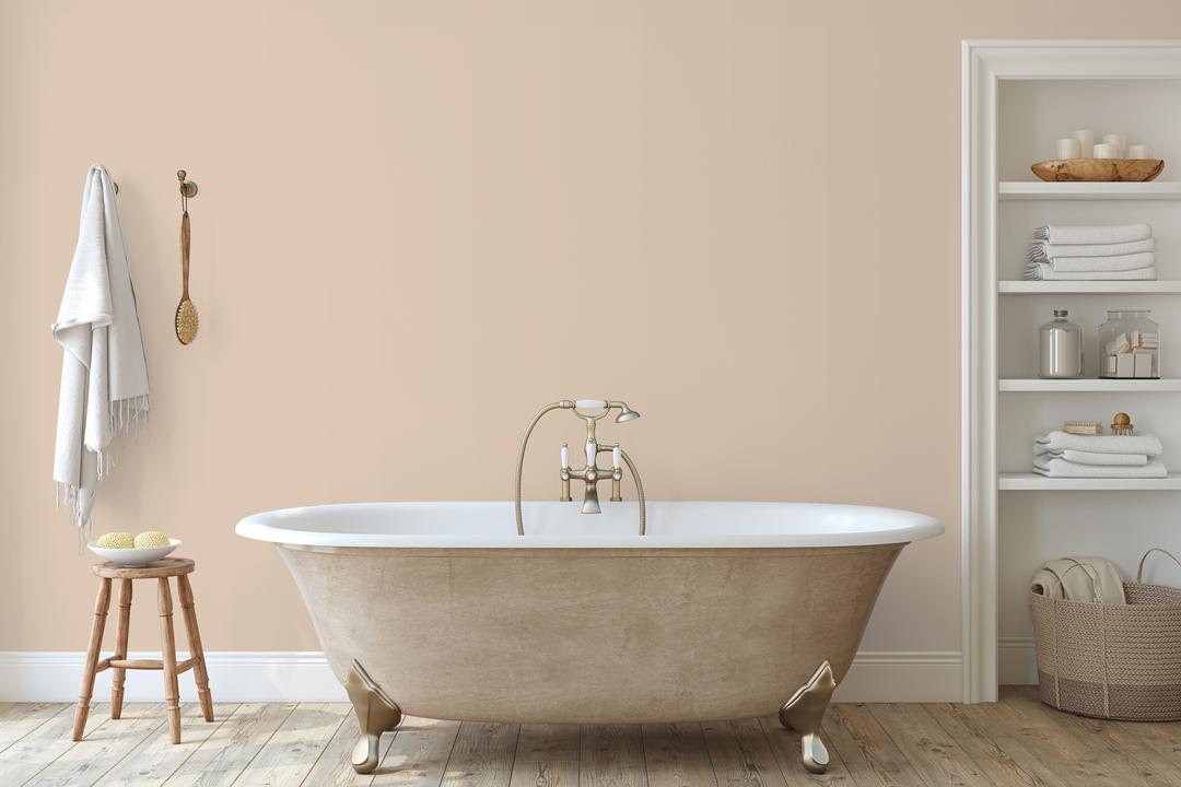 В интерьере этот цвет создает атмосферу путешествий и тепла. Он отлично сочетается с натуральными материалами и зеленью. При разном освещении меняется от бежевого до оранжеватого.