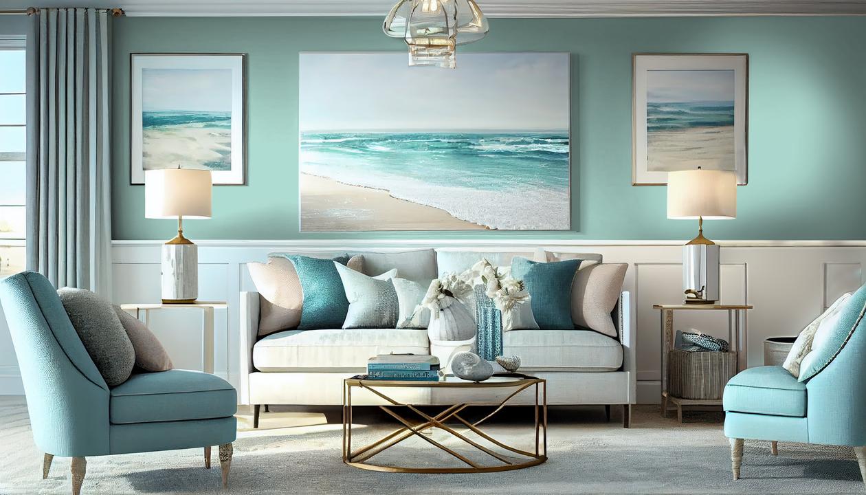 В интерьере этот цвет наполняет пространство светом и прохладой. Он визуально расширяет комнату, делает ее более просторной. При разном освещении играет от голубого до зеленого.