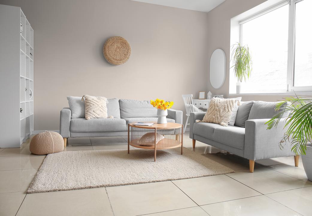 В интерьере этот цвет создает атмосферу изысканности и спокойствия. Он хорошо работает как фон для классической мебели. При разном освещении меняется от розового до серого.