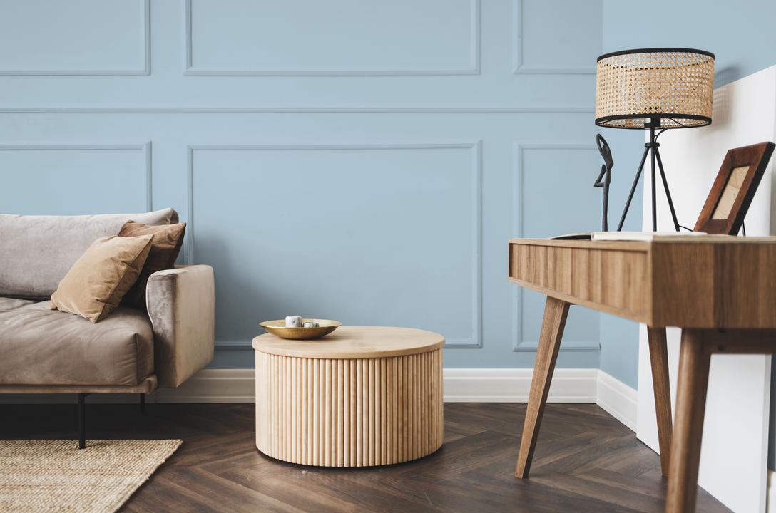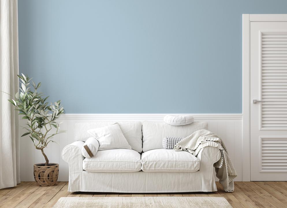 В интерьере этот цвет создает атмосферу южного курорта и беззаботности. Он отлично сочетается с теплыми тонами и деревом. При разном освещении играет от голубого до серого.